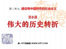 关键词:建设有中国特色的社会主义教学课件,伟大的历史转折教学课件,新人教版八年级下册历史PPT课件,八年级历史幻灯片课件下载,建设有中国特色的社会主义PPT课件下载,伟大的历史转折PPT课件下载,.ppt格式