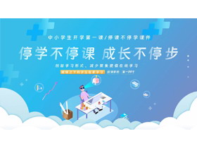 蓝色矢量风格的“停学不停课成长不停步”中小学开学第一课PPT模板下载