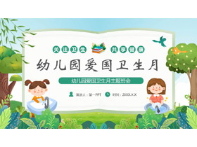 绿色清新卡通风格的幼儿园爱国卫生月主题班会PPT模板下载