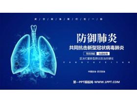 《防御肺炎——共同抗击新型冠状病毒肺炎》PPT课件包含了解新型冠状病毒、如何预防、正确佩带口罩、食品安全五大要点等内容。