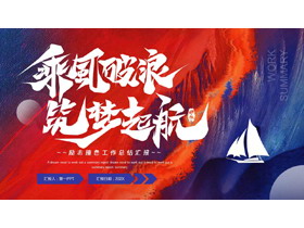 这是一套红蓝撞色励志风“乘风破浪筑梦起航”工作总结汇报PPT模板,共20页;