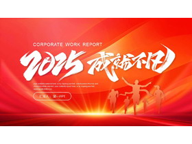红色人物剪影背景的励志风“2025成就不凡”工作总结汇报PPT模板下载