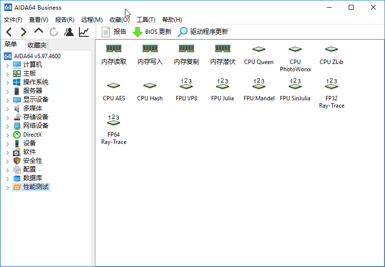 AIDA64实现了一个64位的基准来衡量计算机进行各种数据处理任务和数学计算的速度有多快。内存和缓存的基准可用来分析系统的内存带宽和延迟。处理器的基准利用MMX,3DNOW!和SSE指令,并扩大到32个处理器内核。对于传统处理器的所有基准测试可在32位版本以及。 AIDA64磁盘基准确定的硬盘驱动器,固态驱动器,光盘驱动器,和基于闪存的设备的数据传输速度。
