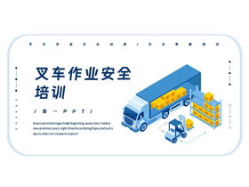 蓝色矢量2.5D风格的叉车作业安全培训PPT模板下载