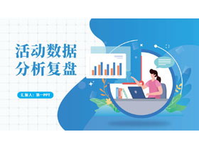 这是一套蓝色矢量办公剪切画背景的活动数据分析复盘PPT模板,共21页;