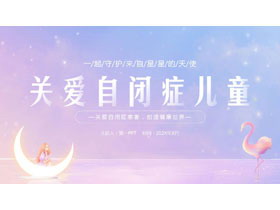 蓝粉梦幻卡通风格的关爱自闭症儿童PPT模板下载
