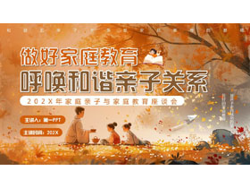 橙色插画风“做好家庭教育呼唤和谐亲子关系”家庭亲子与家庭教育座谈会PPT模板
