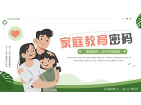 绿色卡通一家人背景的家庭教育密码PPT模板