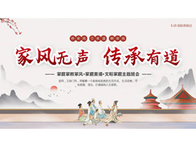 古典中国风背景的“家风无声传承有道”家庭家教家风教育主题班会PPT模板