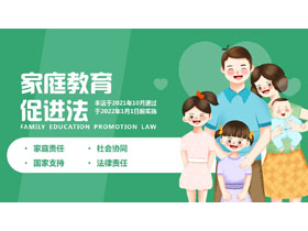 绿色可爱卡通风格的家庭教育促进法宣传介绍PPT模板