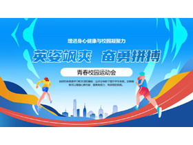 蓝色矢量风格的“英姿飒爽奋勇拼搏”青春校园运动会PPT模板
