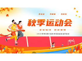 红橙配色矢量运动员背景的校园秋季运动会开幕式PPT模板