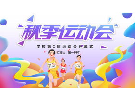 多彩卡通运动员背景的秋季运动会开幕式PPT模板
