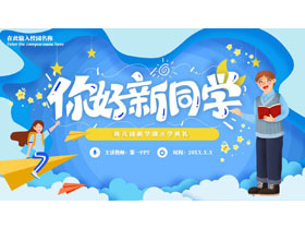 蓝色卡通风格的“你好新同学”幼儿园新学期开学典礼PPT模板下载