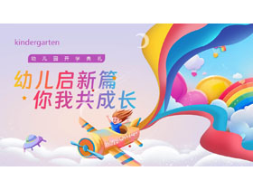 彩色卡通风格的“幼儿启新篇你我共成长”幼儿园开学典礼PPT模板下载
