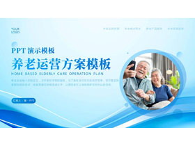 这是一套蓝色慈祥老人背景的养老运营方案PPT模板,共19页;