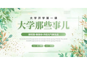 绿色鎏金水彩风“大学那些事儿”大学开学第一课PPT模板下载