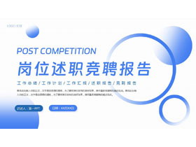这是一套蓝色圆点圆环背景的岗位述职竞聘报告PPT模板,共23页;
