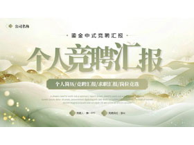 绿色鎏金中式群山背景的个人竞聘汇报PPT模板下载