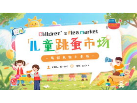 这是一套彩色卡通风格的儿童跳蚤市场活动策划PPT模板,共14页;