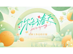 绿橙清新卡通风格的“你好春天”工作总结计划PPT模板下载