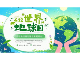 绿色插画风小学生世界地球日主题班会PPT模板下载
