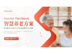 这是一套红色慈祥老人背景的智慧养老方案PPT模板,共19页;
