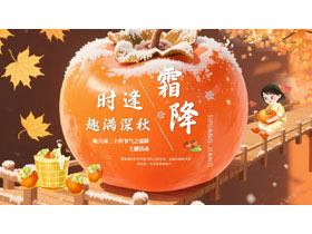 插画柿子背景的幼儿园二十四节气之霜降主题活动PPT模板