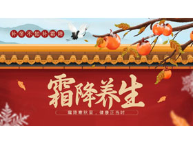 红色古典红墙背景的霜降养生宣传介绍PPT模板