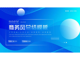 这是一套蓝色曲线圆点背景的商务风工作总结汇报PPT模板,共20页;