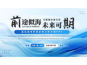 蓝色动感波浪曲线背景的“前途似海未来可期”科技企业宣传介绍PPT模板下载