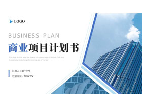 这是一套蓝色写字楼背景的简约风商业项目计划书PPT模板,共20页;