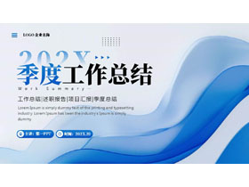 这是一套蓝色层叠波浪曲线背景的季度工作总结PPT模板,共22页;