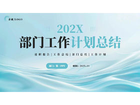 这是一套青色动感曲线背景的部门工作计划总结PPT模板,共23页;
