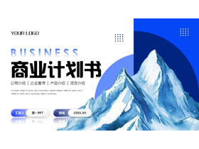这是一套蓝色高山山峰背景的商业计划书PPT模板,共20页;