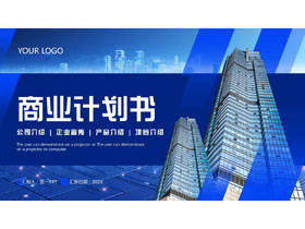 蓝色高大写字楼背景的商务风商业计划书PPT模板下载