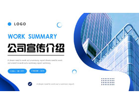 蓝色写字楼背景的简约商务风公司宣传介绍PPT模板下载