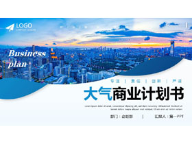 这是一套蓝色城市建筑背景的大气商业计划书PPT模板,共20页;