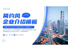蓝色城市建筑背景的简约风企业介绍宣传PPT模板下载