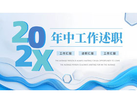 蓝色动感曲线背景的年中工作述职报告PPT模板下载