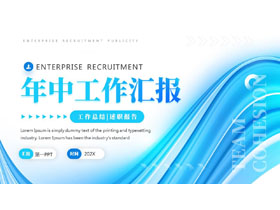 蓝色动感曲线背景的年中工作汇报PPT模板下载
