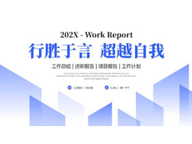 蓝色简约“行胜于言超越自我”工作总结项目报告PPT模板下载