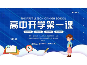 蓝色卡通风格的高中开学第一课主题班会PPT模板下载
