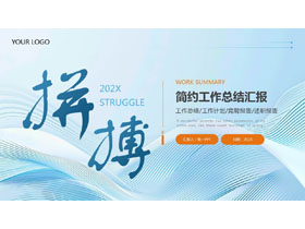 蓝色动感曲线背景的“拼搏”简约工作总结汇报PPT模板下载