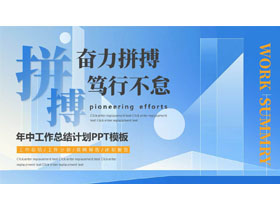 这是一套蓝色几何风“奋力拼搏笃行不怠”年中工作总结计划PPT模板,共20页;