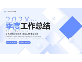 这是一套蓝色层叠方块背景的季度工作总结PPT模板,共23页;