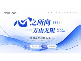 蓝色动感曲线背景的“心之所向万山无阻”简约工作总结汇报PPT模板下载