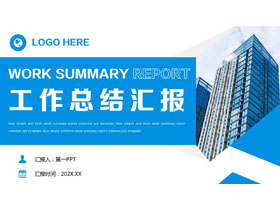 蓝色写字楼背景的商务风工作总结汇报PPT模板下载