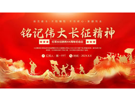 这是一套红色鎏金“铭记伟大长征精神”红军长征胜利纪念日PPT模板,共26页;