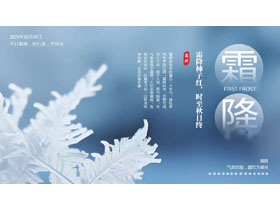 蓝色挂霜的树枝背景的霜降节气介绍PPT模板